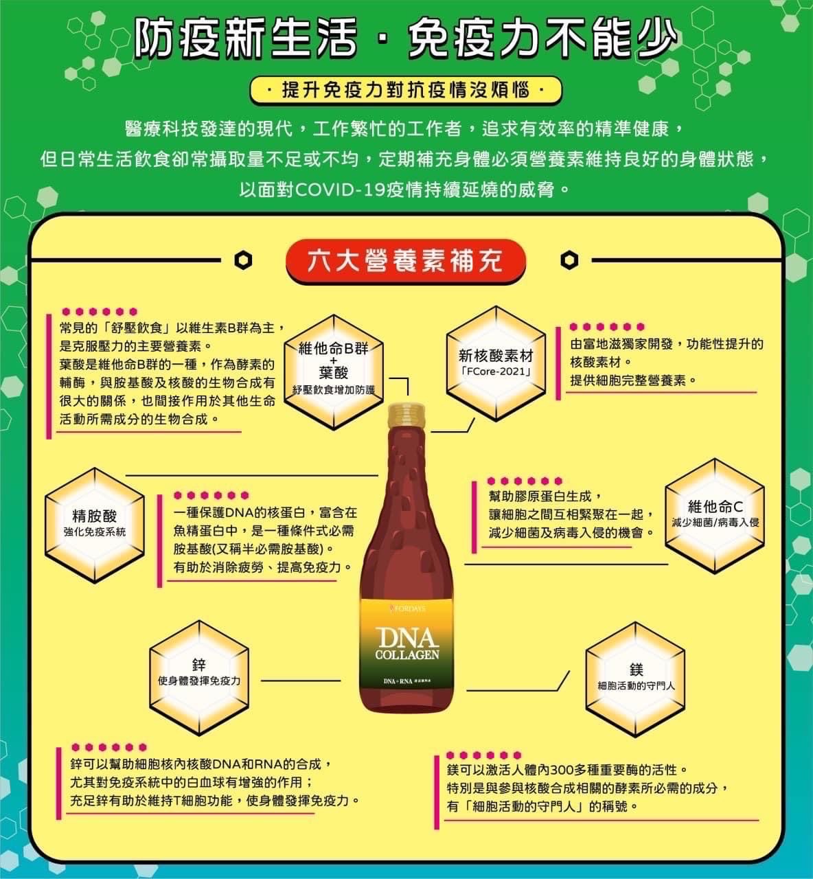 大量存在於細胞分裂根源——「細胞核」中的,就是DNA《去氧核糖核酸》。此外,在細胞核周圍「細胞質」中的,則是RNA《核糖核酸》,二者成爲一組,負責核細胞分裂的任務,而因爲呈現酸性,所以稱為「 核酸」。DNA帶有承襲父母親的遺傳資訊,指示蛋白質的合成。RNA則基於DNA的資訊,實際進行蛋白質的合成。簡單地說,DNA就是製造蛋白質的設計圖,RNA則是按造設計圖來製造蛋白質。人體大都是由蛋白質所構成的,像人體的肌肉、臟器、肌膚、頭髮的顏色、眼睛的晶狀體等,都是由蛋白質所構成的。在食物轉換爲熱量時,需要與蛋白質相同的氨基酸所組成的酵素。也就是說,DNA、RNA製造人體的「基礎」。
